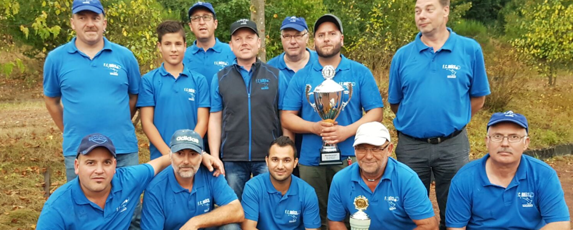 Bei einem recht überschaubaren Teilnehmerfeld ( BSG Nunkirchen, Boulefreunde Reimsbach, Boulefreunde Honzrath ) nahm der F. C. Brück mit zwei Mannschaften teil.Als amtierender Kreispokalsieger konnten wir nach durchwachsenen Mannschaftsleistungen ( lediglich unser Einzelspieler Andreas Arens hatte Normalform ) die Plätze drei und vier erreichen.Sieger wurde die Ligamannschaft der BSG Nunkirchen gefolgt von den Boulefreunden Honzrath.Dass wir überhaupt mit zwei Mannschaften antreten konnten, ( krankheits und berufsbedingst fehlten Gian Franco Bruno, Volker Mertes und Mario Richly ) machte unsere Ersatzfrau Giny, die wirauf dem letzten Turnier in Oppen kennengelernt hatten und ihre Sache sehr gut machte, erst möglich. Hierfür nochmals herzlichen Dank an Giny !Wiederum ein schöner Erfolg für die Hobbyspieler aus Rimlingen :)Es kamen folgende Spieler zum Einsatz:1. Mannschaft Einzel: Andreas Arens Doublette: Domenico Bruno und Patrick Streveler Triplette: Meinhard Palm, Mustafa und Wolfgang Jager2. Mannschaft Einzel: Thomas Hermann Doublette: Dieter Hoen und Frank Schlink Triplette: Manfred Nittler, Gilbert Heuser und Giny