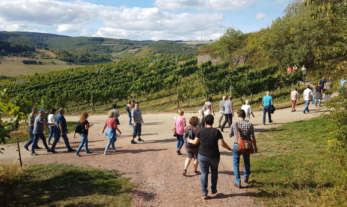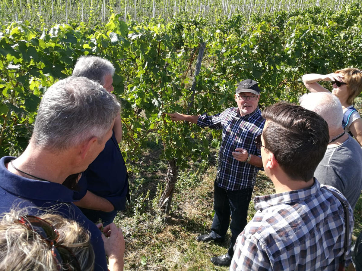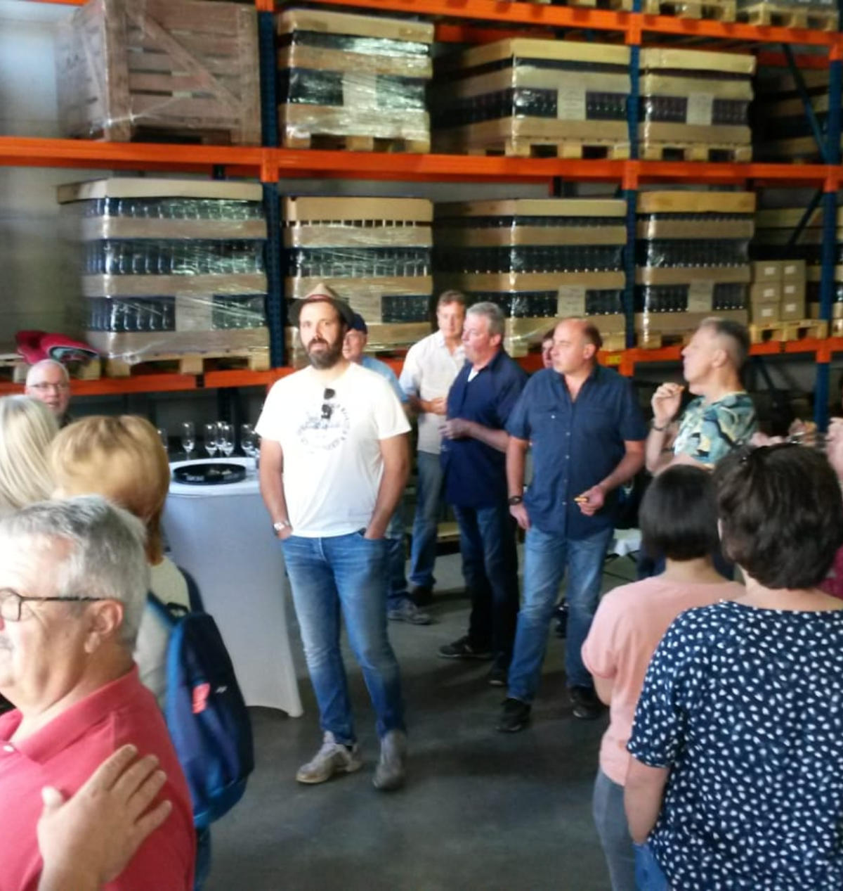 Am 15. September war es wieder soweit… Wir fuhren zu unseren Freunden nach Oberemmel zum Weingut Kirchen-Faber. Mit der Rekordteilnehmerzahl von 38 Personen starteten wir um 13:00 Uhr Richtung Weingut. Diesmal wurden bereits im Bus gekühlte Getränke serviert (wir sind ja lernfähig), welches die Anreise gleich viel kurzweiliger gestaltete. Im Weingut wurden wir dann mit einem Sekt Willkommen geheißen. Im Anschluss an die kleine Erfrischung wurde uns die Arbeitsweise des neuen Vollernters erklärt und gezeigt. Dann ging es zu einer geführten Runde in den Wingert. Hier wurde uns mal wieder allerlei Wissenswertes über den Wein und die Lese vermittelt. Mit geballtem Wissen kehrten wir nun zurück zum Weingut und konnten hier unser Gelerntes im praktischen Teil stimmungsvoll umsetzen. Eine Flasche nach der anderen wurde auf den Prüfstand gestellt und für gut befunden. Auch gab es gut geschwenktes Schaukelfleisch und selbstgemachte Salate (Dank an die Spender), die mit Appetit verspeist wurden.Im Anschluß verbrachten wir noch ein paar schöne Stunden in der Weinstube, bis uns der Bus letztlich gegen 22:30 Uhr wieder wohlbehalten nach Hause brachte.